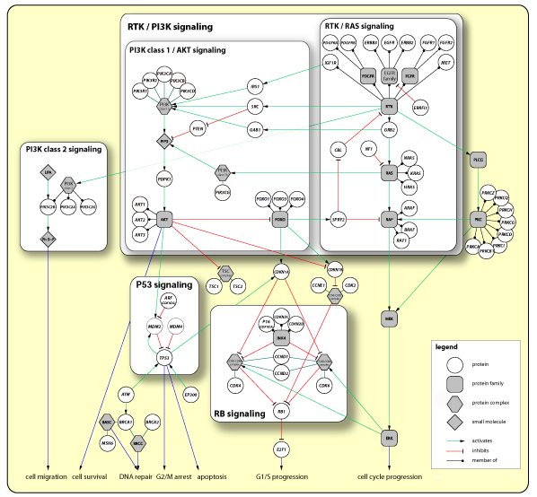 cBio Cancer Genomics Portal provides visualization, analysis and download of large-scale cancer genomics data sets. With NRNB funding, the portal now enables researchers to dynamically visualize, analyze and filter cancer genomic data in the context of pathways and interaction networks derived from Pathway Commons. Network visualization is provided by Cytoscape.js.